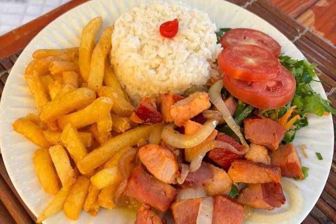 Caso queira batata frita, haverá um acréscimo de R$6,00;